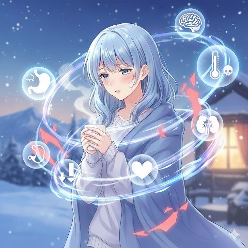 体は熱を逃がさないように血管を収縮させます。 これにより血圧が急激に上昇し、特に高齢者や持病を持つ人では、 心筋梗塞や脳卒中といった循環器系の疾患を引き起こしたり、 悪化させたりするリスクが高まります。 - 関節痛・神経痛: 寒さで筋肉がこわばったり、血行不良になったりすることで、